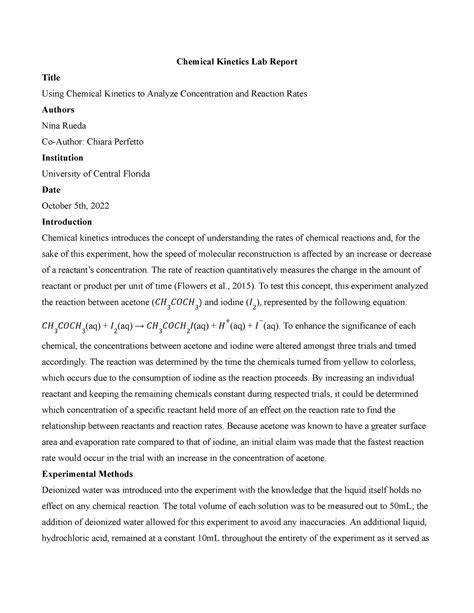 Read Online chemical kinetics lab report Library Binding ManyBooks